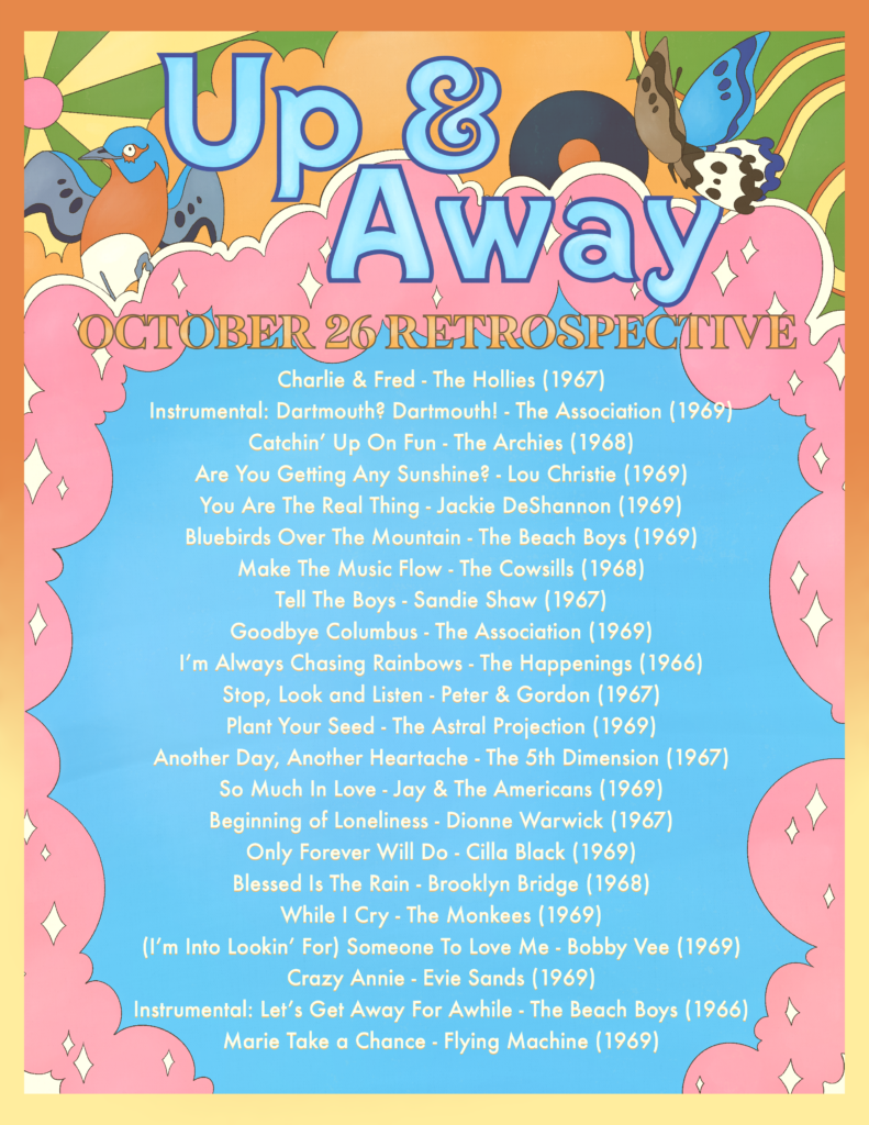 Our first genre special of the year, and what a groovy thing we had goin’! I had just gotten back from a big birthday party at my aunt’s, so I ended up making a few fumbles here and there. But as always I loved exploring the late 1960s with y’all again and can’t wait to bring you more genres! Stay tuned for our Early ’70s Sunshine special!