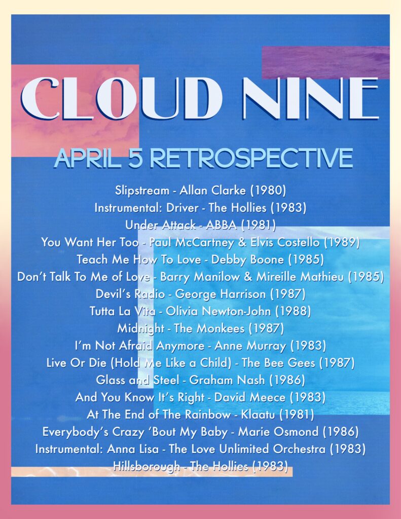 Happy birthday to Allan Clarke, and happy Easter to everyone! Tonight we checked in on some of Sugar Dove’s favorites and how they were adapting to the digital age– our first foray into the funky 1980s! I had a blast making this broadcast, even if I was a bit under the weather… (excuse my huskiness. Although my mom said it made me sound cool)